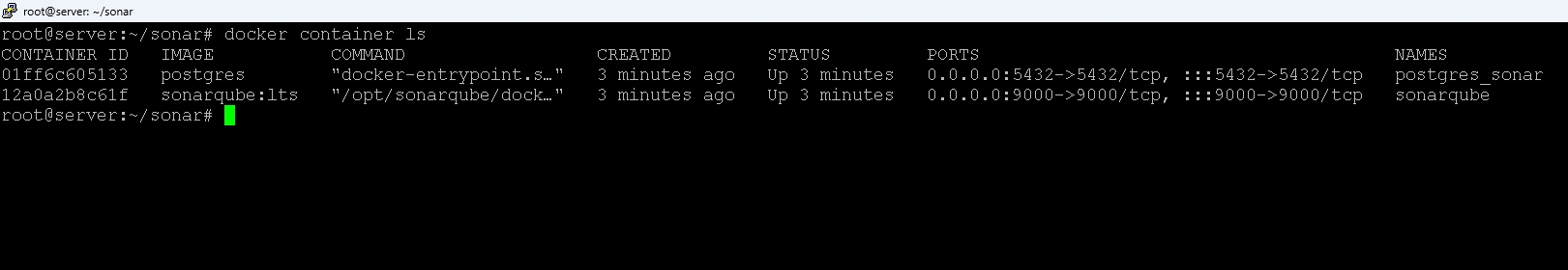 root@server:~# apt update root@server:~# apt install docker.io docker-compose version root@server:~# docker compose version Docker Compose version v2.14.1 위에 문서에 "" 를 제거 한다. root@server:~/sonar# docker compose up -d services.sonarqube.ulimits.nofile.hard must be a integer 디렉토리를 만들고 root@server:~# mkdir sonar root@server:~# cd sonar/ root@server:~/sonar# ls 아래 값을 입력하고 root@server:~/sonar# vi docker-compose.yml 실행 root@server:~/sonar# docker-compose up -d |