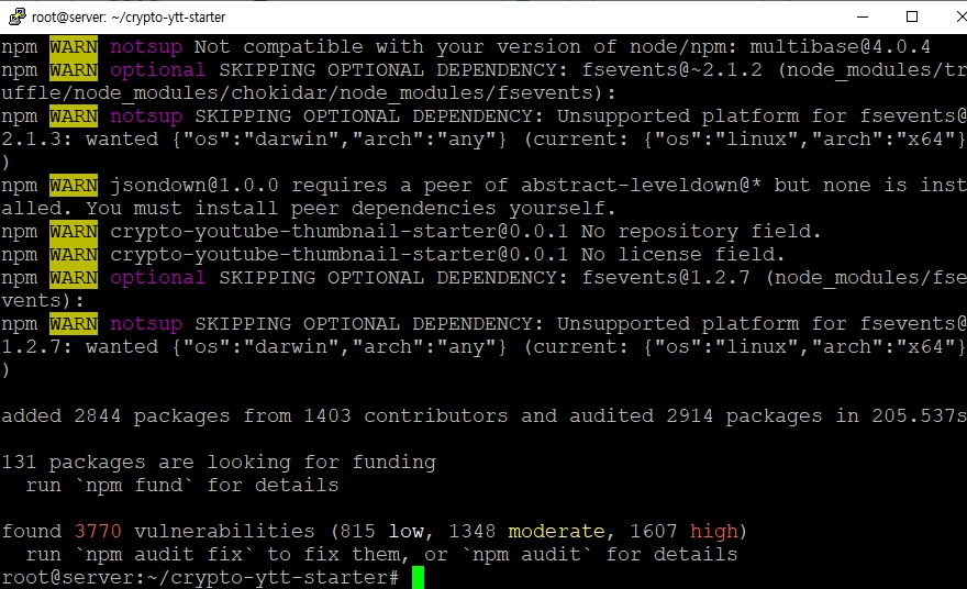 | #git clone https://github.com/kkagill/crypto-ytt-starter.git #cd crypto-ytt-starter/ #npm cache clean --force #npm install |